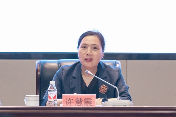 许慧霞作了题为《深化改革谋发展  治理提升强效能  聚力打造高水平师范大学建设新生态》的报告。许慧霞指出,今年既是政治大年、发展大年,也是教育大年、拼搏大年。她从创大拼“博”、人才队伍建设、人才培养、科学研究、开放办学、后勤保障、党建思政等七个方面对学校上半年工作进行了全面回顾,在肯定成绩的同时,重点分析了学校当前发展存在的问题短板。她指出,破解这些问题,学校迫切需要深化改革,提升治理能力,要从被动到主动,从管理到治理,从跟跑到错位领跑。